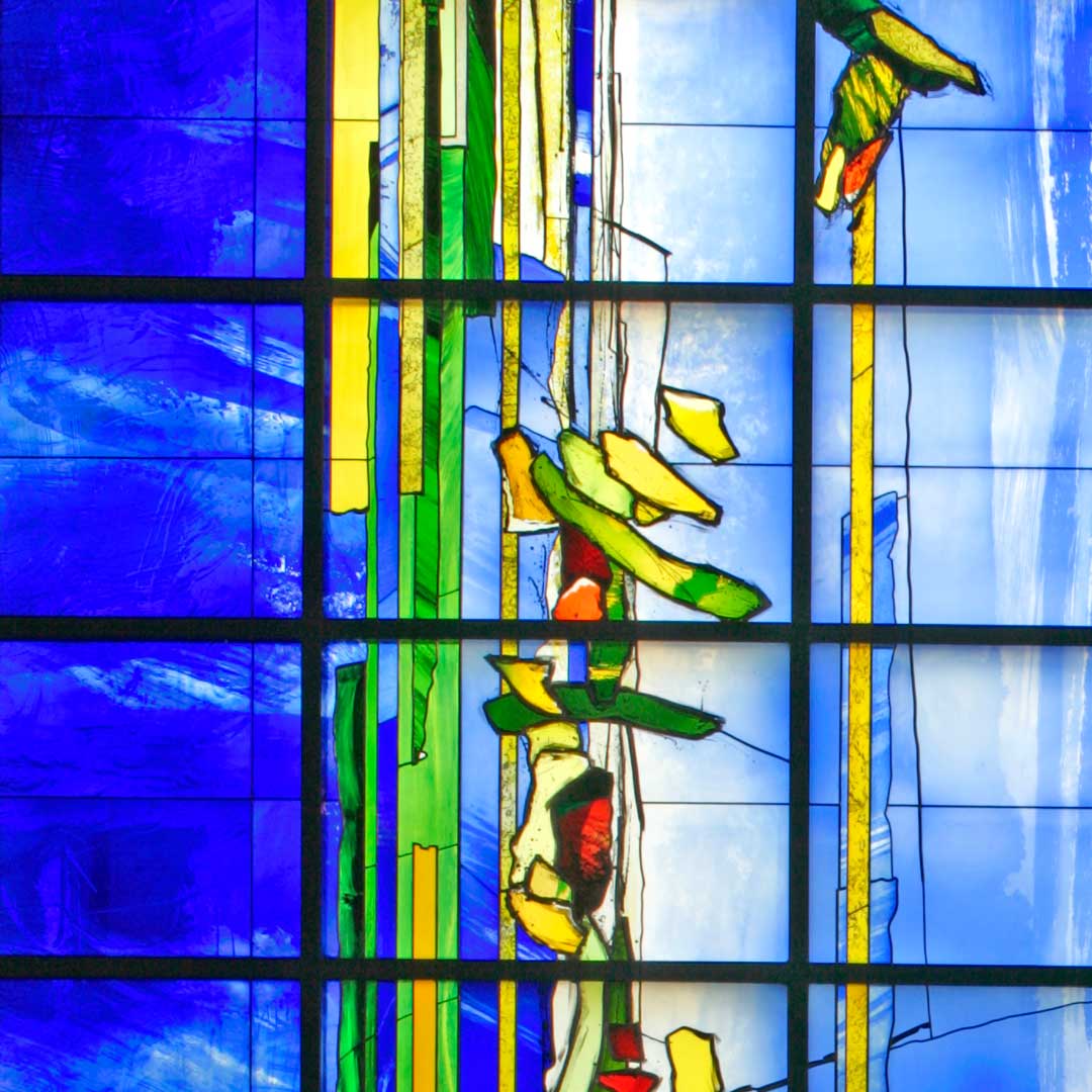 This church saved up over nearly ten years, to be able to order each one these six large windows, a new one every eighteen months. The windows are all traditional leaded stained glass, made entirely with Lamberts mouth-blown glass.